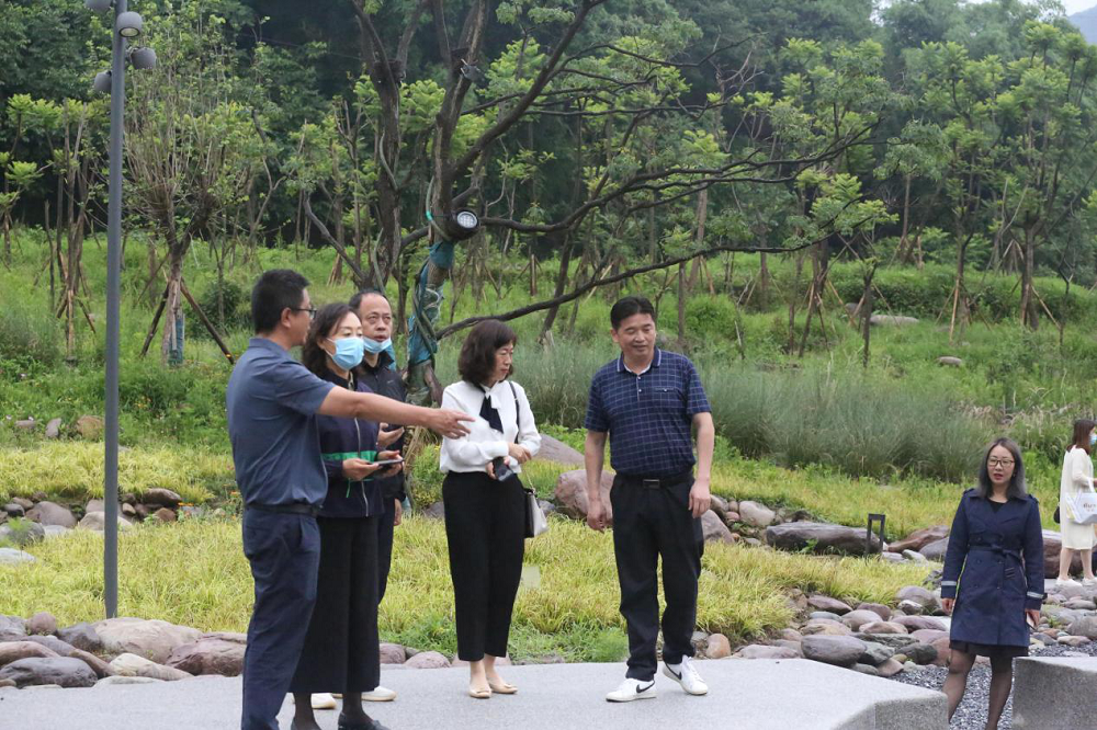 走進海花溝大地公園,在這海天一色的美景下,滿園的花繁草茂,公園里溪流旋轉,叮咚作響,時刻沖擊人們的視覺與聽覺。期間李總向客人們介紹了海花溝項目之前的地勢地貌及原有的景觀特色。
